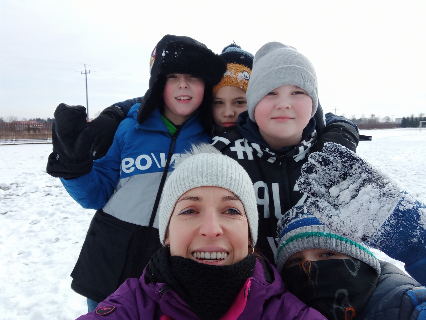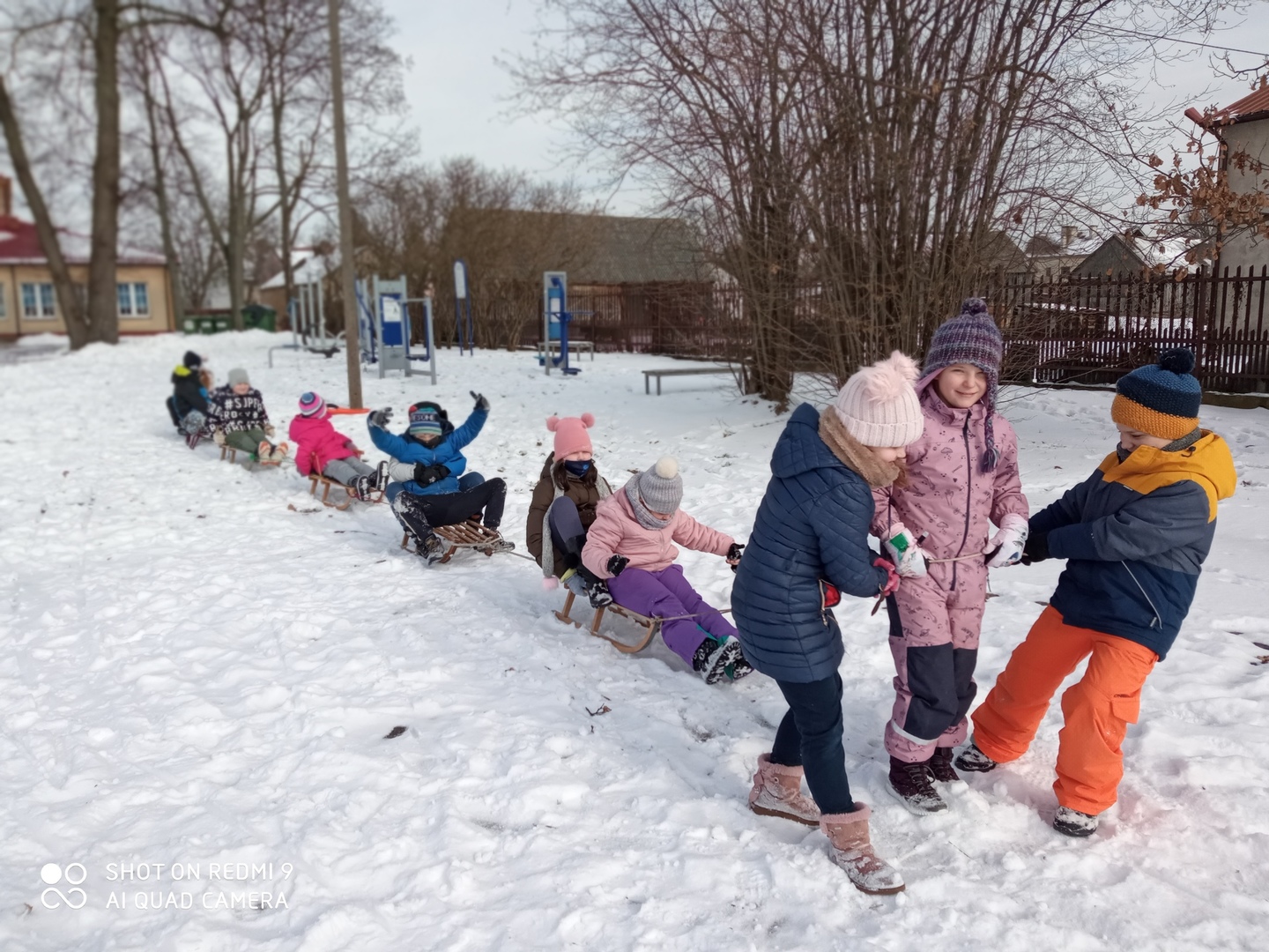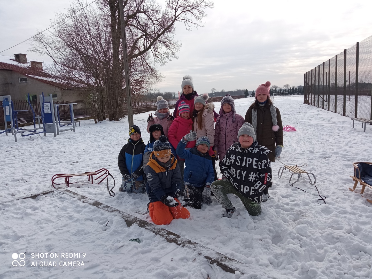 Zima jak co roku zaskoczyła drogowców, ale nie naszych pierwszaków. Zabezpieczeni przed mrozem i śniegiem, wyposażeni w sanki i inny sprzęt sportowy wyruszyli na zajęcia sportowe na świeżym powietrzu.