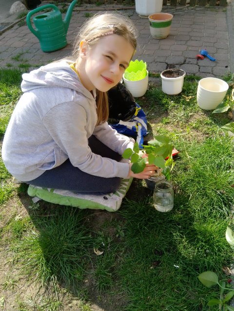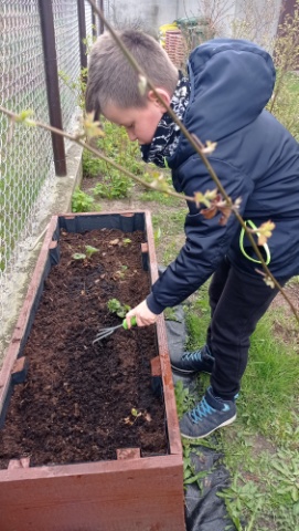 Dzieci porządkowały przydomowe ogródki, zakładały uprawy w skrzynkach i sadziły rośliny.