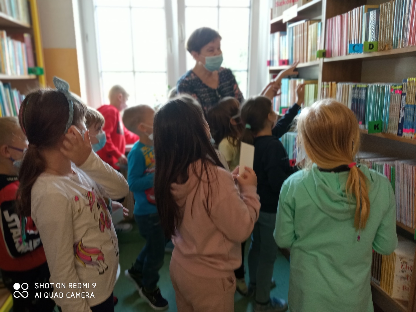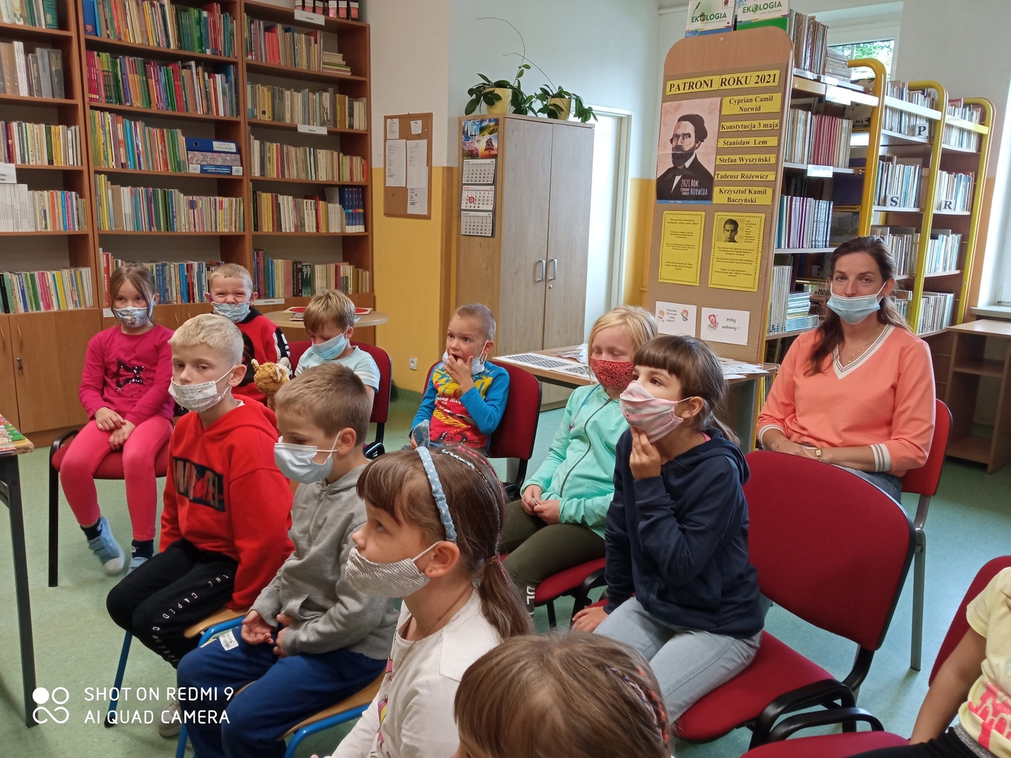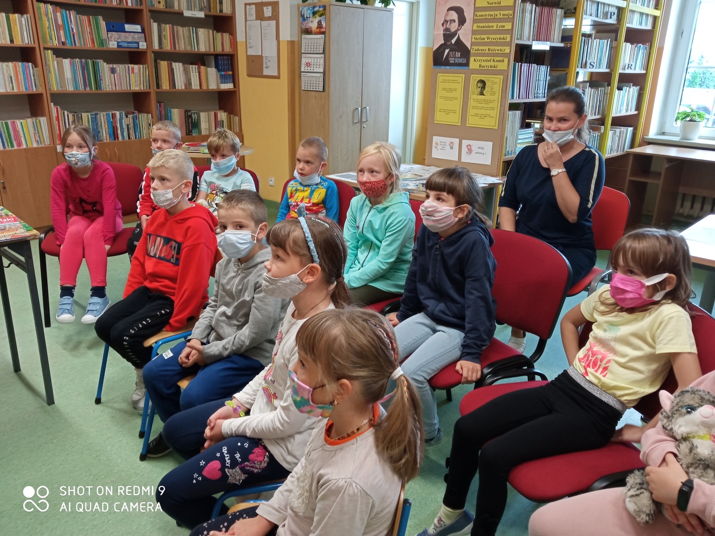 Dnia 14 września 2021 r. uczniowie klasy I pod opieką wychowawczyni p. Magdy Czajkowskiej oraz p. Małgorzaty Cybulskiej odwiedzili bibliotekę szkolną. Celem spotkania było wyjaśnienie uczniom zasad właściwego użytkowania i poszanowania książek – nie tylko bibliotecznych. Dzieci poznały zasady korzystania z zasobów biblioteki, zachowania się w bibliotece oraz sposób wypożyczania i oddawania książek. Dostrzegły różnice między biblioteką publiczną, biblioteką szkolną a księgarnią. Następnie każdy uczeń mógł samodzielnie wypożyczyć swoją pierwszą książkę z biblioteki szkolnej, a tym samym został przyjęty do grona czytelników biblioteki szkolnej. Na pamiątkę tej wizyty w bibliotece dzieci otrzymały okolicznościowe zakładki do książek.