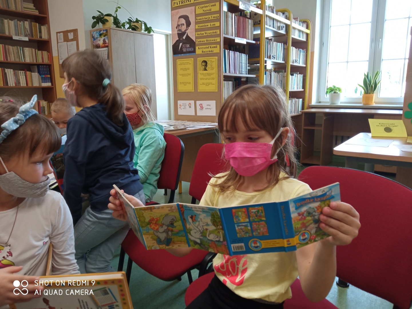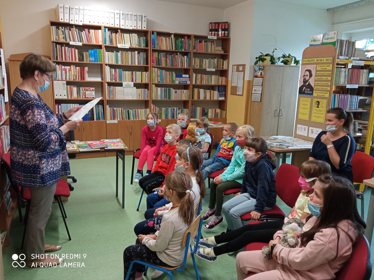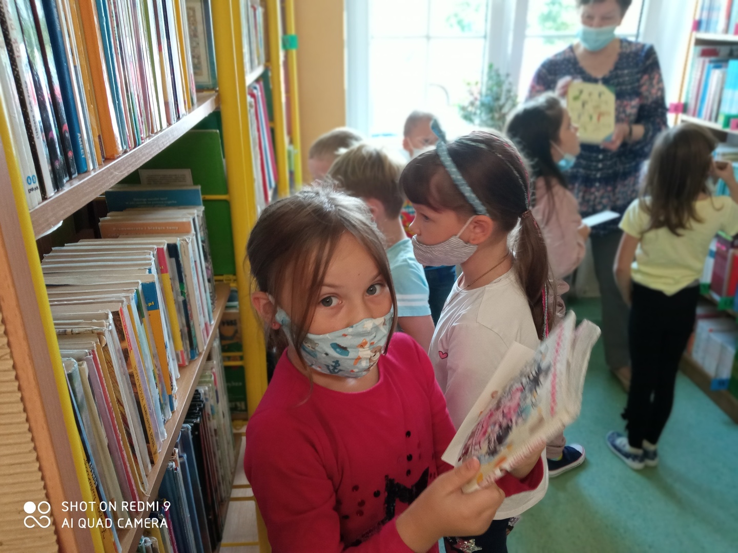 Dnia 14 września 2021 r. uczniowie klasy I pod opieką wychowawczyni p. Magdy Czajkowskiej oraz p. Małgorzaty Cybulskiej odwiedzili bibliotekę szkolną. Celem spotkania było wyjaśnienie uczniom zasad właściwego użytkowania i poszanowania książek – nie tylko bibliotecznych. Dzieci poznały zasady korzystania z zasobów biblioteki, zachowania się w bibliotece oraz sposób wypożyczania i oddawania książek. Dostrzegły różnice między biblioteką publiczną, biblioteką szkolną a księgarnią. Następnie każdy uczeń mógł samodzielnie wypożyczyć swoją pierwszą książkę z biblioteki szkolnej, a tym samym został przyjęty do grona czytelników biblioteki szkolnej. Na pamiątkę tej wizyty w bibliotece dzieci otrzymały okolicznościowe zakładki do książek.