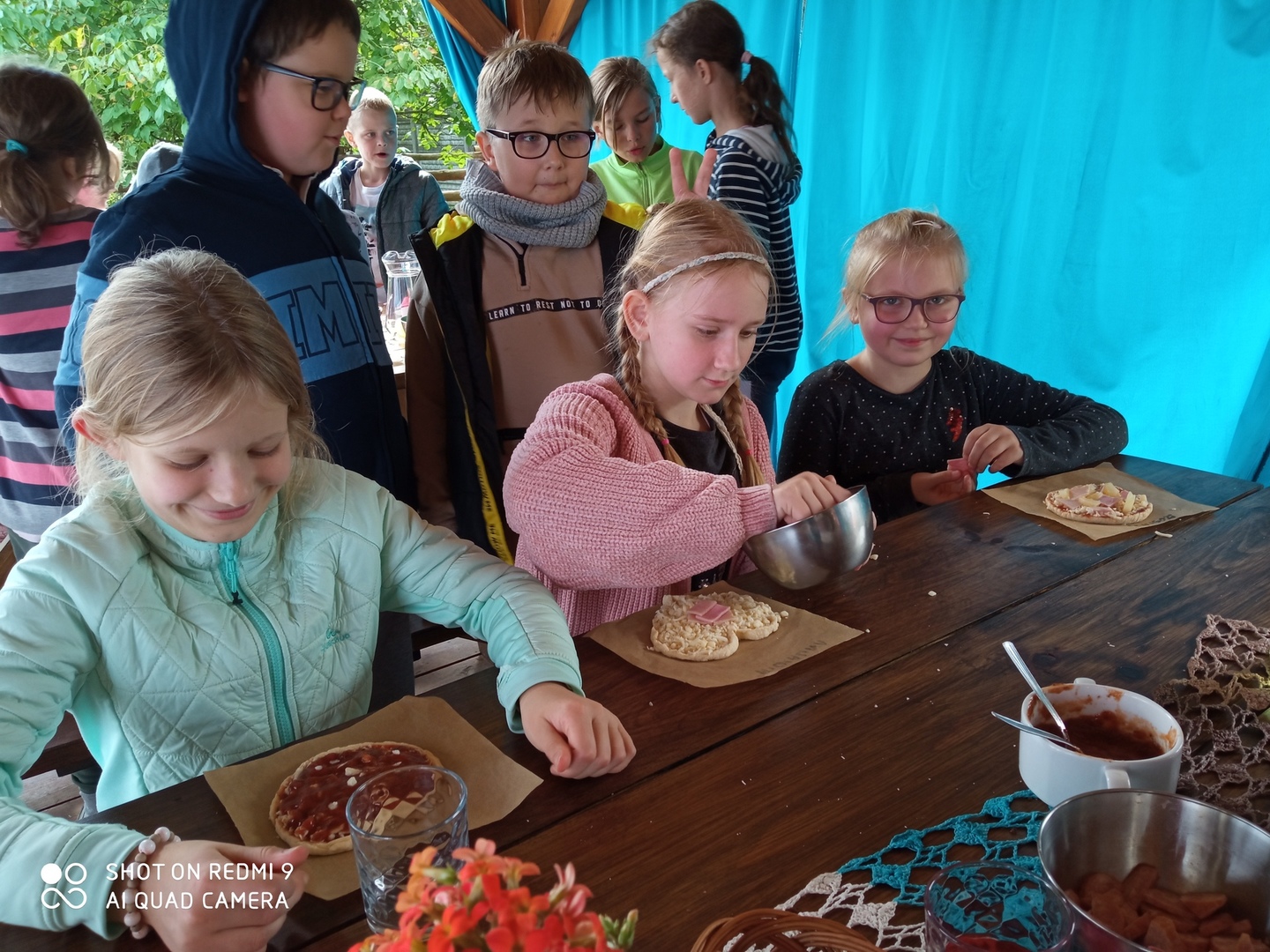 Wiemy już dobrze, że w Śmiechominku jest zawsze dobra zabawa. Było tak i tym razem. Nasi uczniowie z klas I-III wybrali się na wycieczkę do Secyminka, gdzie czekało ich moc atrakcji! Było więc karmienie zwierząt, a wśród nich lamy, kozy, kuce, pieski, pawie oraz wielbłąd - Matylda. Dzieci podejmowały wyzwania w plenerze, bawiły się na ogromnym dmuchańcu, z zaangażowaniem rozwiązywały wiele skomplikowanych zagadek pracując zgodnie w grupie. Kolejnym punktem zajęć były warsztaty pieczenia pizzy, którą z apetytem każdy zajadł.