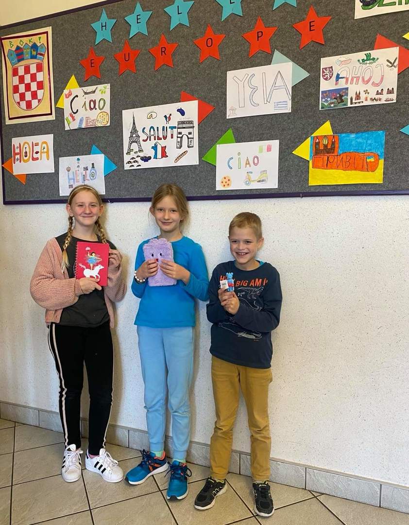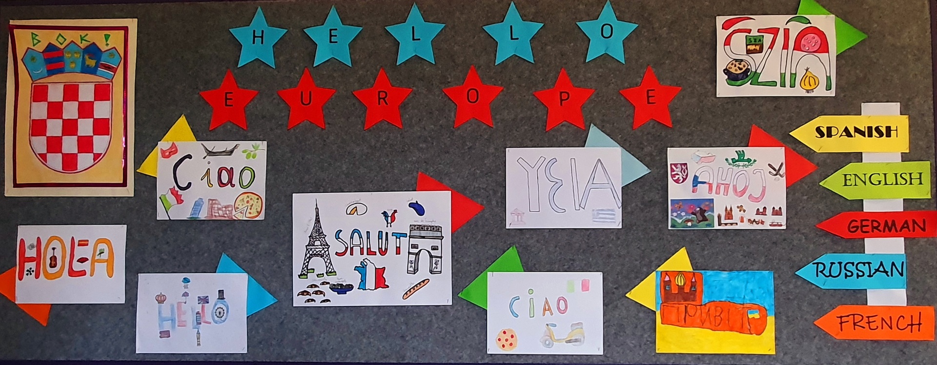 Czy znacie jakieś języki europejskie, w których można się przywitać? Uczniowie klas młodszych znają ich co najmniej kilka. „Ahoj”, „Ciao”, „Salut”, i „Priviet” to najpopularniejsze powitanie wybrane i zilustrowane przez uczniów klas II-IV. Uczniowie wykazali się nie lada pomysłowością i kreatywnością biorąc udział w konkursie plastyczno-językowym „Hello Europe”. Ich zadaniem było napisanie słowa „Cześć” w wylosowanym języku europejskim oraz narysowanie symboli charakterystycznych dla wybranego państwa europejskiego. Ośmiu uczniów Najciekawsze pracy wykonali uczniowie klasy IV, która decyzją jury zajęła całe podium w następującym składzie:
