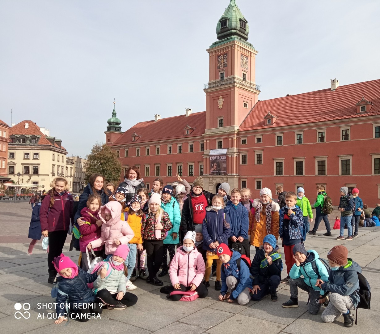 Dnia 26 października klasy I-III wybrały się na wycieczkę do Warszawy. Dzieci zwiedzały Zamek Królewski pod okiem przewodnika oraz brały udział w warsztatach. Uczniowie dowiedzieli się wiele ciekawostek z życia ostatniego, polskiego króla na zamku. Kolejnym punktem wycieczki był spacer po Starym Mieście oraz wjazd na 30 piętro Pałacu Kultury i Nauki, gdzie mieliśmy okazję podziwiać piękną panoramę Warszawy.