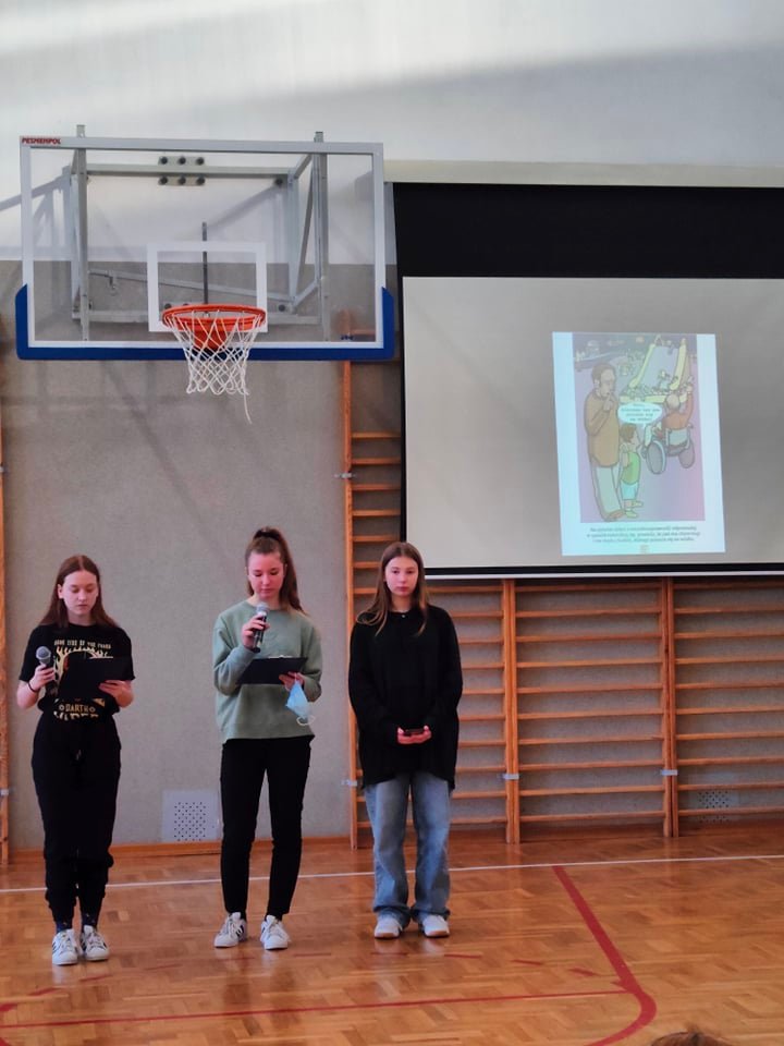 W dniu 3 grudnia obchodzimy Międzynarodowy Dzień Osób Niepełnosprawnych ustanowiony przez Organizację Narodów Zjednoczonych. Tego dnia na całym świecie odbywają się uroczystości, któych celem jest promowanie praw osób niepełnosprawnych i działań na rzecz pełnej ich realizacji. Nasza Szkoła aktywnie włączyła się w obchody tego dnia. Samąrząd Szkolny wspólnie z Kołem Wolontariatu przygotowali dla wszystkich uczniów przezentacię pt. "Savoir-vivre wobec osób niepełnosprawnych". Maja, uczennica klasy VIII, przeprowadziła wywiad z Natalią, która od urodzenia cierpi na mózgowe porażenie dziecięce. Natalia opowiedziała nam jak wygląda jej codzienne życie. Niepełnosprawność nie przeszkadza Jej w rozwijaniu pasji:ukończyła studia, jest wolontariuszem w programie społecznym "Szlachetna paczka" oraz wspiera Wielką Orkiestrę Świątecznej Pomocy. Na pytanie, co stanowi dla niej największą barierę Natalia odpowiedziała: "Przeświadczenie ludzi pełnospranych, że Jesteśmy słabsi i gorsi!" #dzienosobniepelnosprawnych. Na koniec spotkania słotką niespodziankę dla wszsytkich uczniów przygotowało Koło Wolantariatu. Serdecznie dziękujemy :)