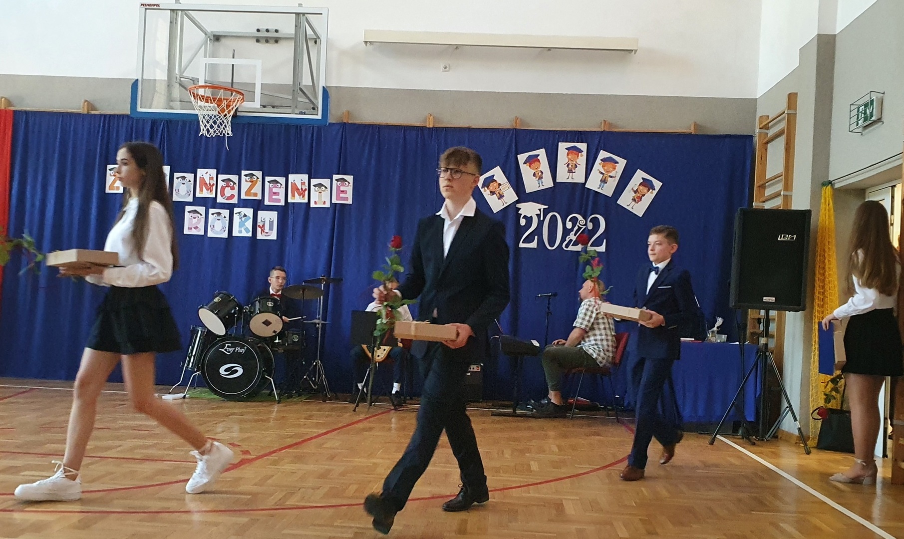Zakończenie roku szkolnego odbyło się w naszej sali gimnatycznej w obecności rodziców i grona pedagogicznego. Nasi uczniowie prezentowali się bardzo elegancko w strojach galowych, a program artystyczny przygotowany przez klasę VIII wzbudził wiele zachwytów i wzruszeń! Dziękujemy Wam za wspólny rok szkolny i życzymy dużo słońca i odpoczynku! Opracowała: Magdalena Garlej