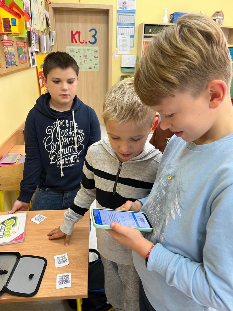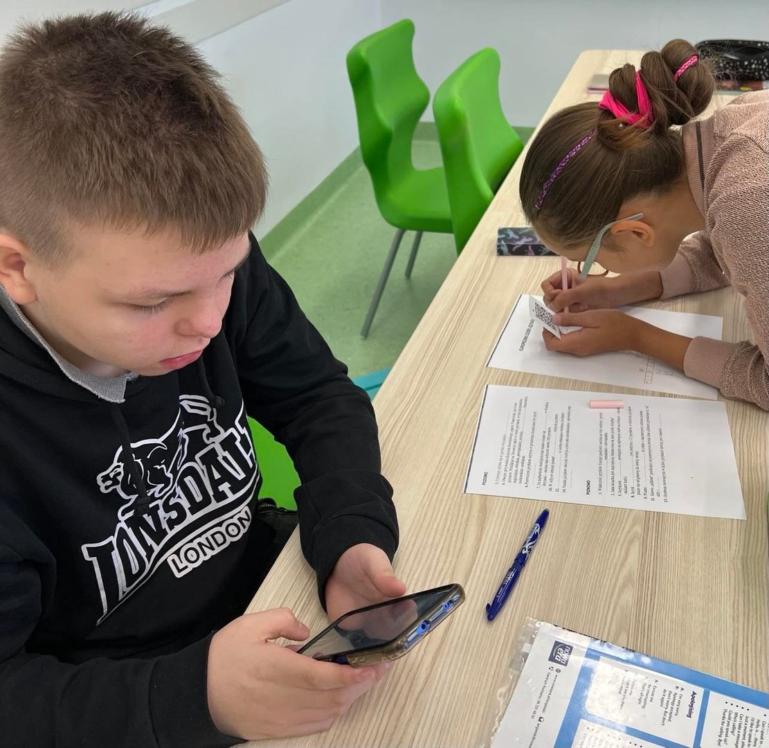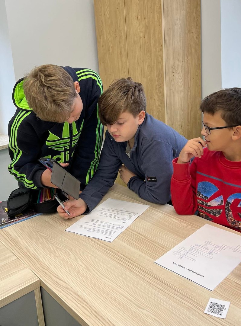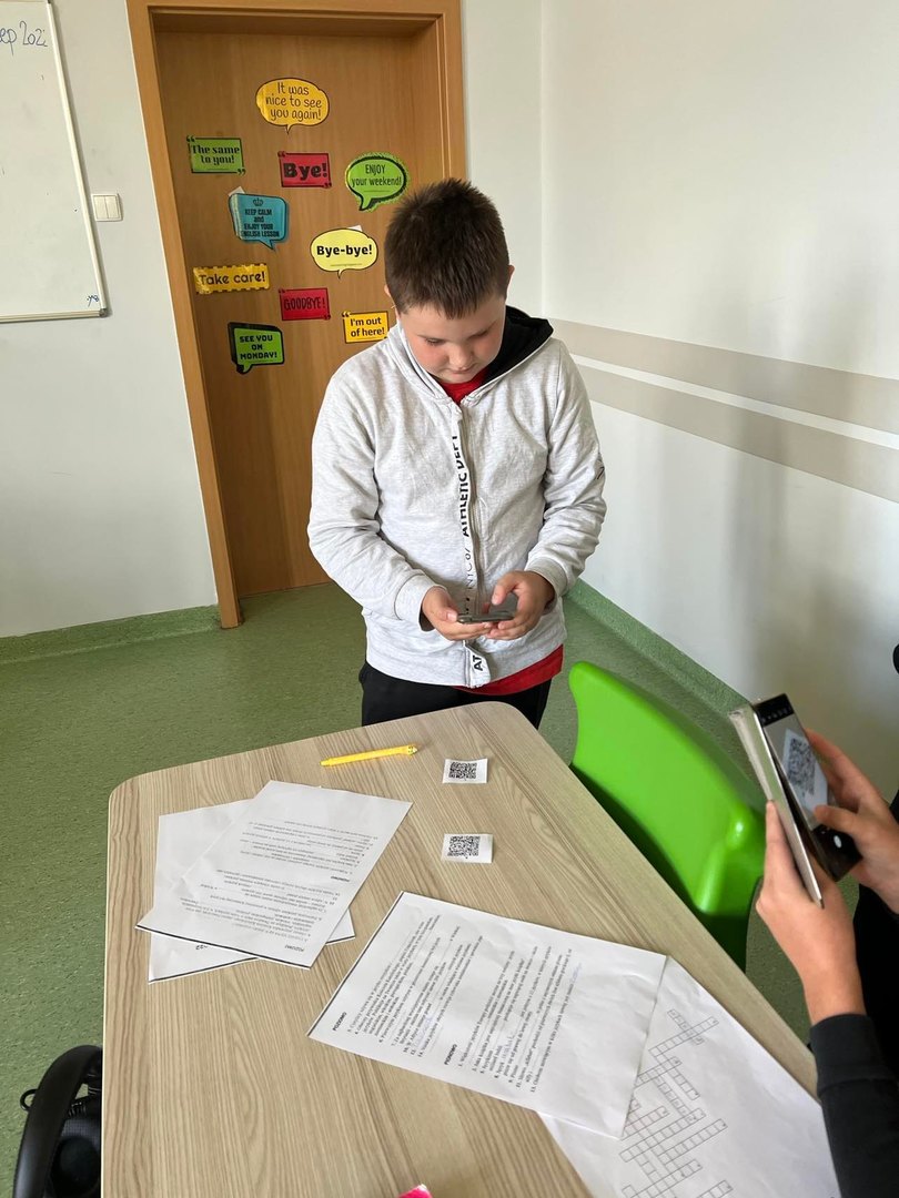 Kim jest poliglota? Którym językiem pisze się od prawej do lewej strony? Od jakich liter alfabetu greckiego pochodzi słowo alfabet? Odpowiedzi na te pytania i wiele innych dotyczących języków europejskich znajdowały się w kodach QR ukrytych w różnych zakamarkach sali językowej. Uczniowie klas 3-6 rewelacyjnie poradzili sobie z odczytaniem zeskanowanych kodów i rozwiązaniem krzyżówki. Odszukanie wszystkich informacji nie było łatwe ponieważ w klasie ukrytych było kilka takich samych kopii QR kodów. Mamy nadzieję, że uczniowie zapamiętali dużo ciekawostek dotyczących języków europejskich. Najszybsi uczniowie zostali nagrodzeni ocenami z języka angielskiego.
