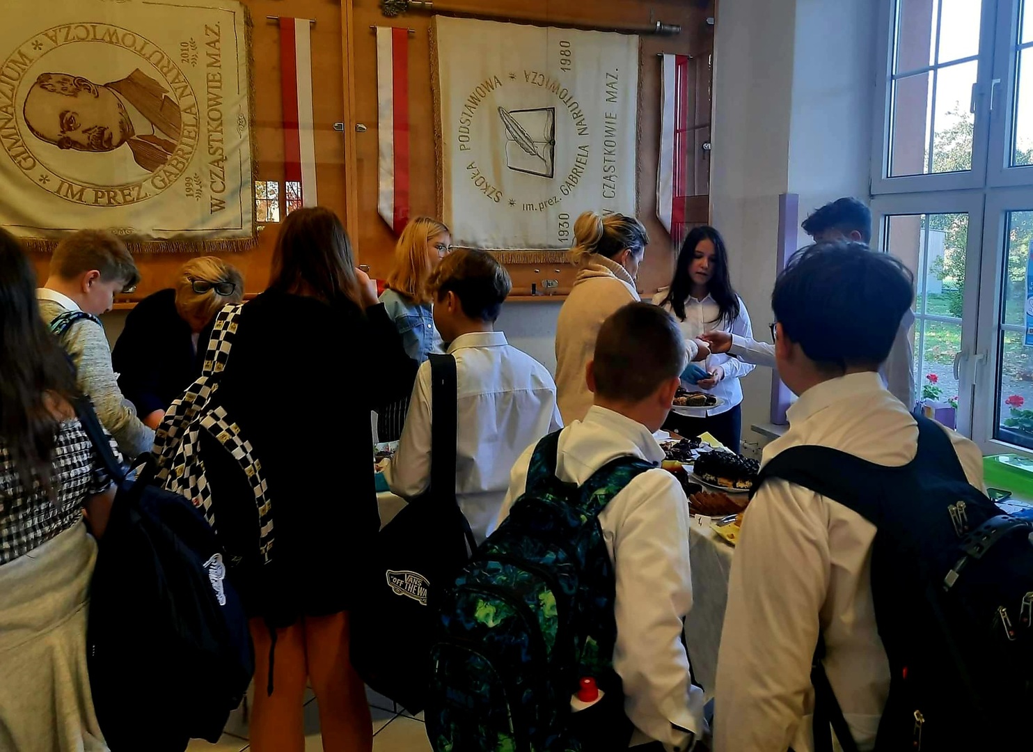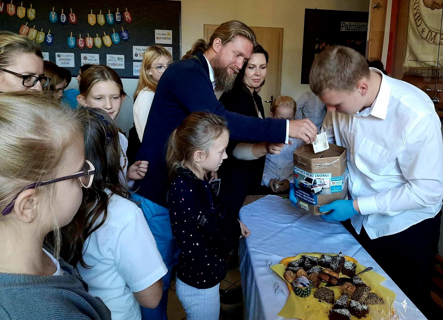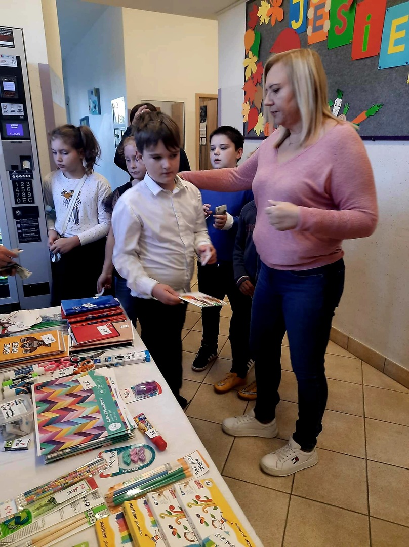 Uczniowie, nauczyciele i rodzice uczestniczyli dzisiaj w kiermaszu-zbiórce na karetkę dla Szpitala Dziecięcego w Dziekanowie Leśnym, która zwiększy bezpieczeństwo i komfort transportu małych pacjentów. Gośćmi kiermaszu byli: Pani Katarzyna Grabska-Gliwka, Kierownik Wydziału Oświaty, Kultury i Promocji Gminy Czosnów, ksiądz Adam Bednarek, Proboszcz Parafii Cząstków Mazowiecki, Pani Magdalena Godlewska i Pan Gabriel Idzikowski, którzy reprezentowali Radę Rodziców. Na kiermaszu można było kupić słodkie wypieki wykonane przez uczniów i rodziców klasy ósmej, obrazy "Jesienne drzewo", których autorami byli uczniowie klasy pierwszej, drugiej i trzeciej oraz przybory szkolne w bardzo atrakcyjnych cenach. Miło nam poinformować, że zebraliśmy 1785,70 zł. Wszystkim uczestnikom serdecznie dziękujemy za zaangażowanie i wsparcie!!!
