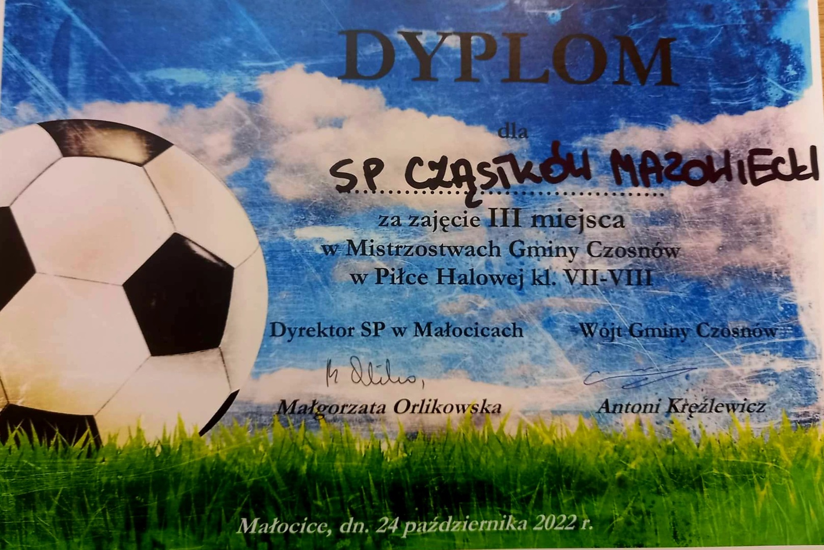 • III miejsce w Mistrzostwach Gminy Czosnów w Piłce...
