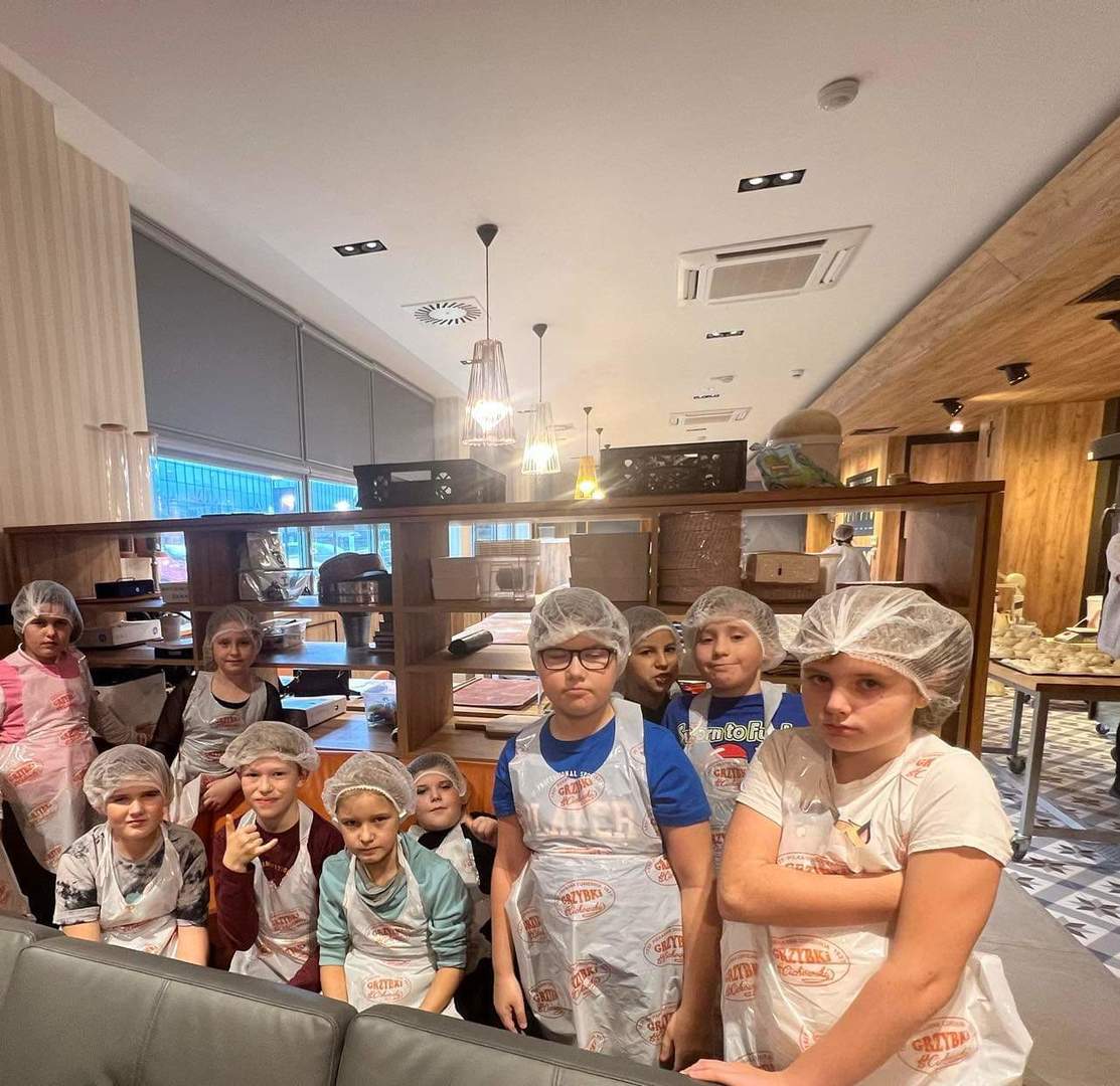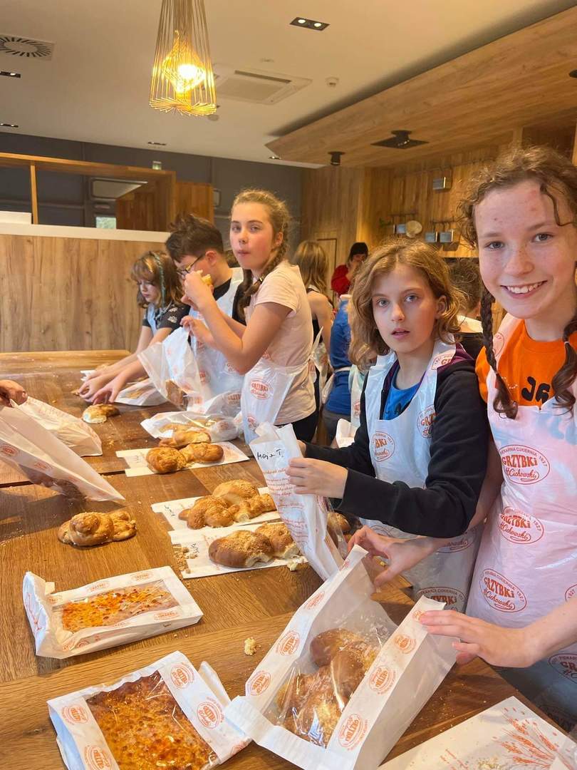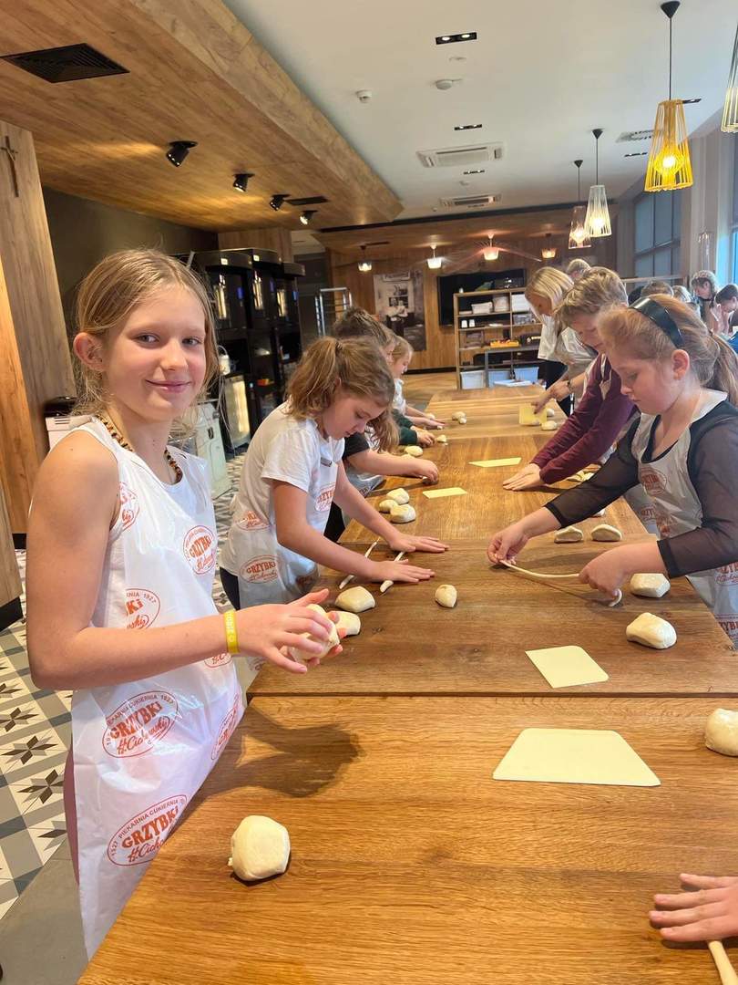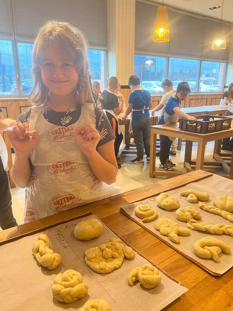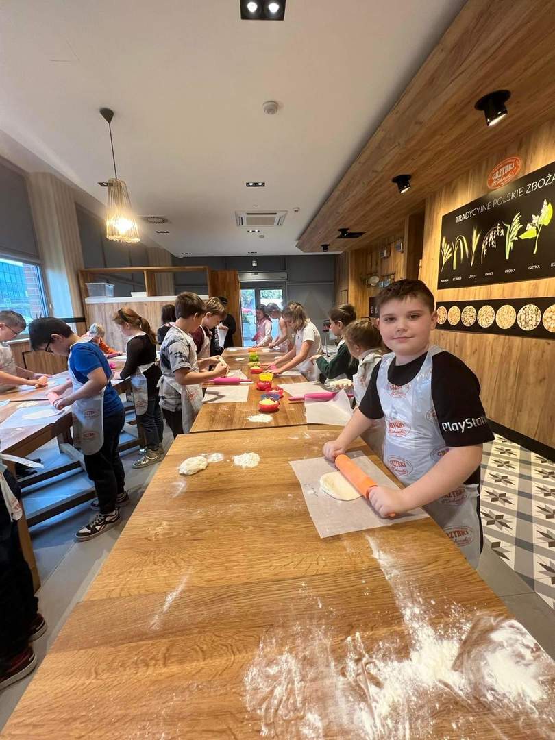 Klasy 3 i 4 były w Muzeum Etnograficznym na lekcji "Gry i zabawy na świecie". Graliśmy w grę żydowską Dreidel, w bilard holenderski, na bębenkach i kalimbach. Uczniowie wykonali zabawkę bilboquet. W Akademii Piekarza w piekarni Grzybki własnoręcznie zrobiliśmy bułki drożdżowe i pizzę.