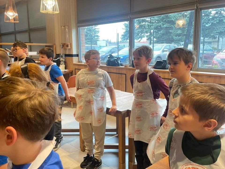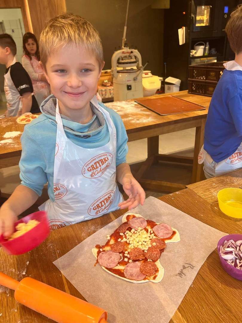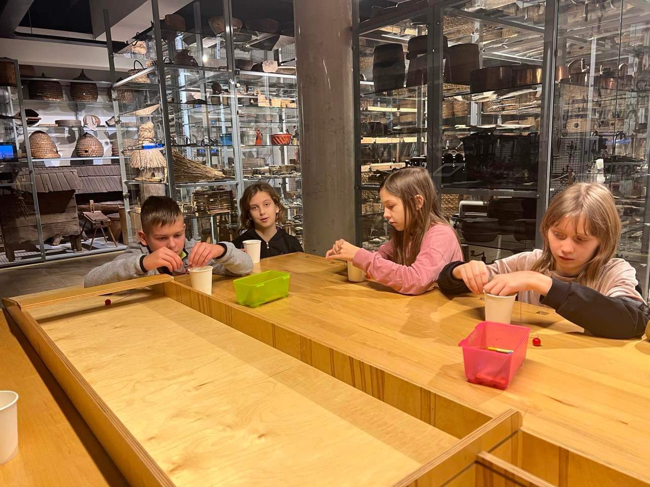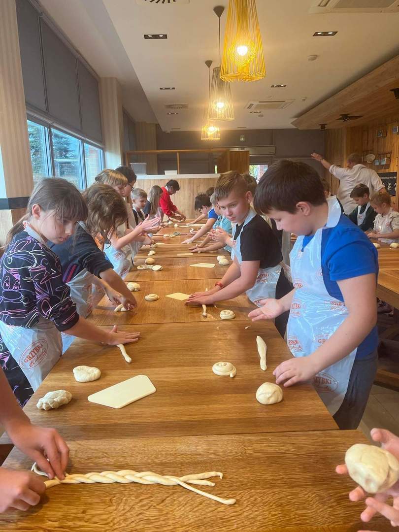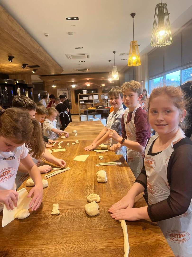 Klasy 3 i 4 były w Muzeum Etnograficznym na lekcji "Gry i zabawy na świecie". Graliśmy w grę żydowską Dreidel, w bilard holenderski, na bębenkach i kalimbach. Uczniowie wykonali zabawkę bilboquet. W Akademii Piekarza w piekarni Grzybki własnoręcznie zrobiliśmy bułki drożdżowe i pizzę.