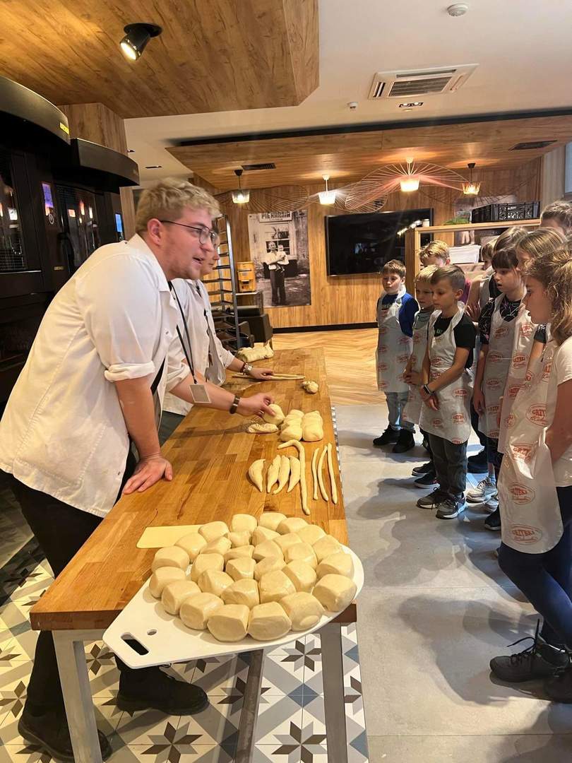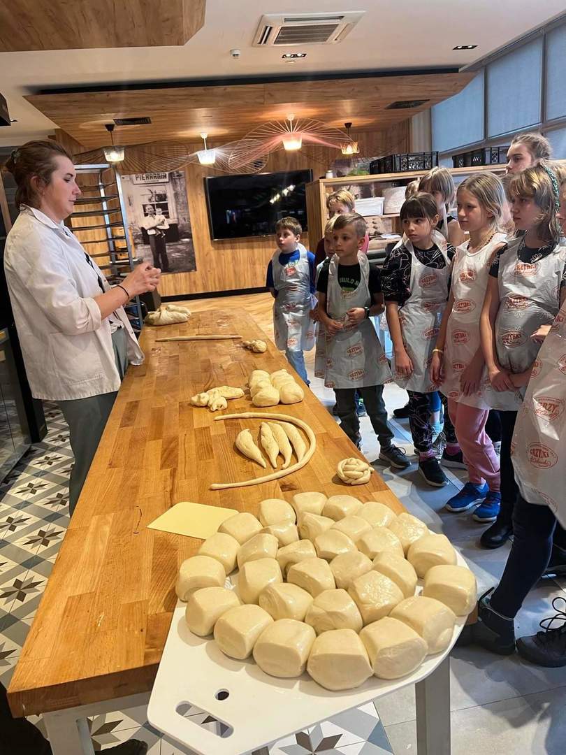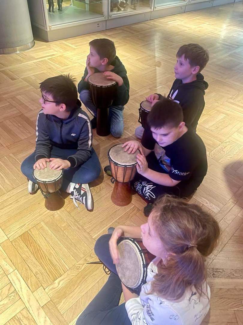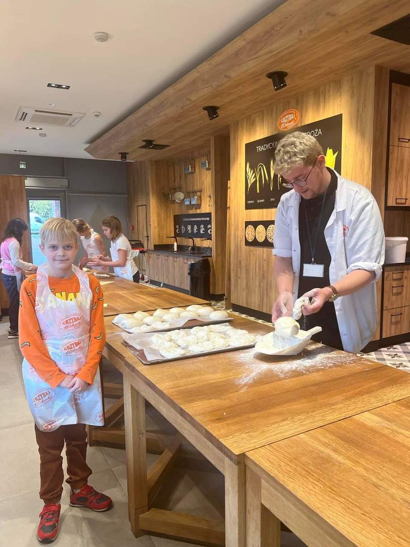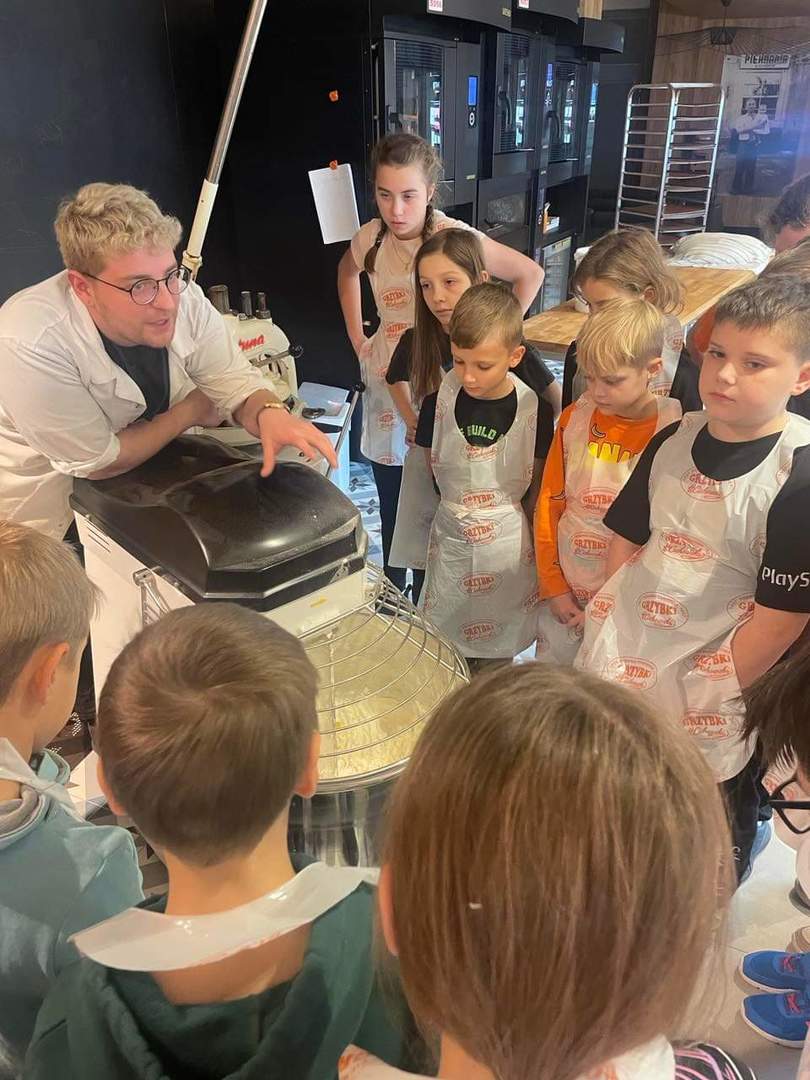 Klasy 3 i 4 były w Muzeum Etnograficznym na lekcji "Gry i zabawy na świecie". Graliśmy w grę żydowską Dreidel, w bilard holenderski, na bębenkach i kalimbach. Uczniowie wykonali zabawkę bilboquet. W Akademii Piekarza w piekarni Grzybki własnoręcznie zrobiliśmy bułki drożdżowe i pizzę.