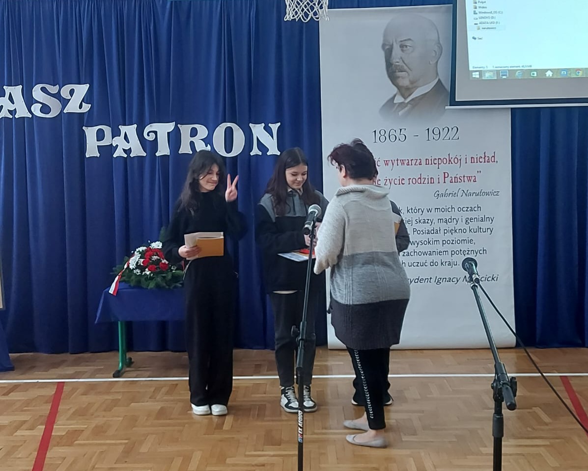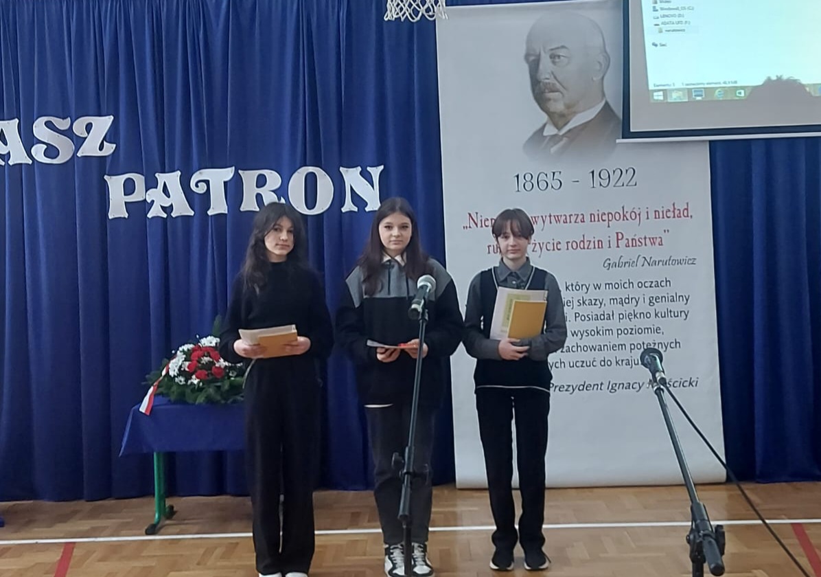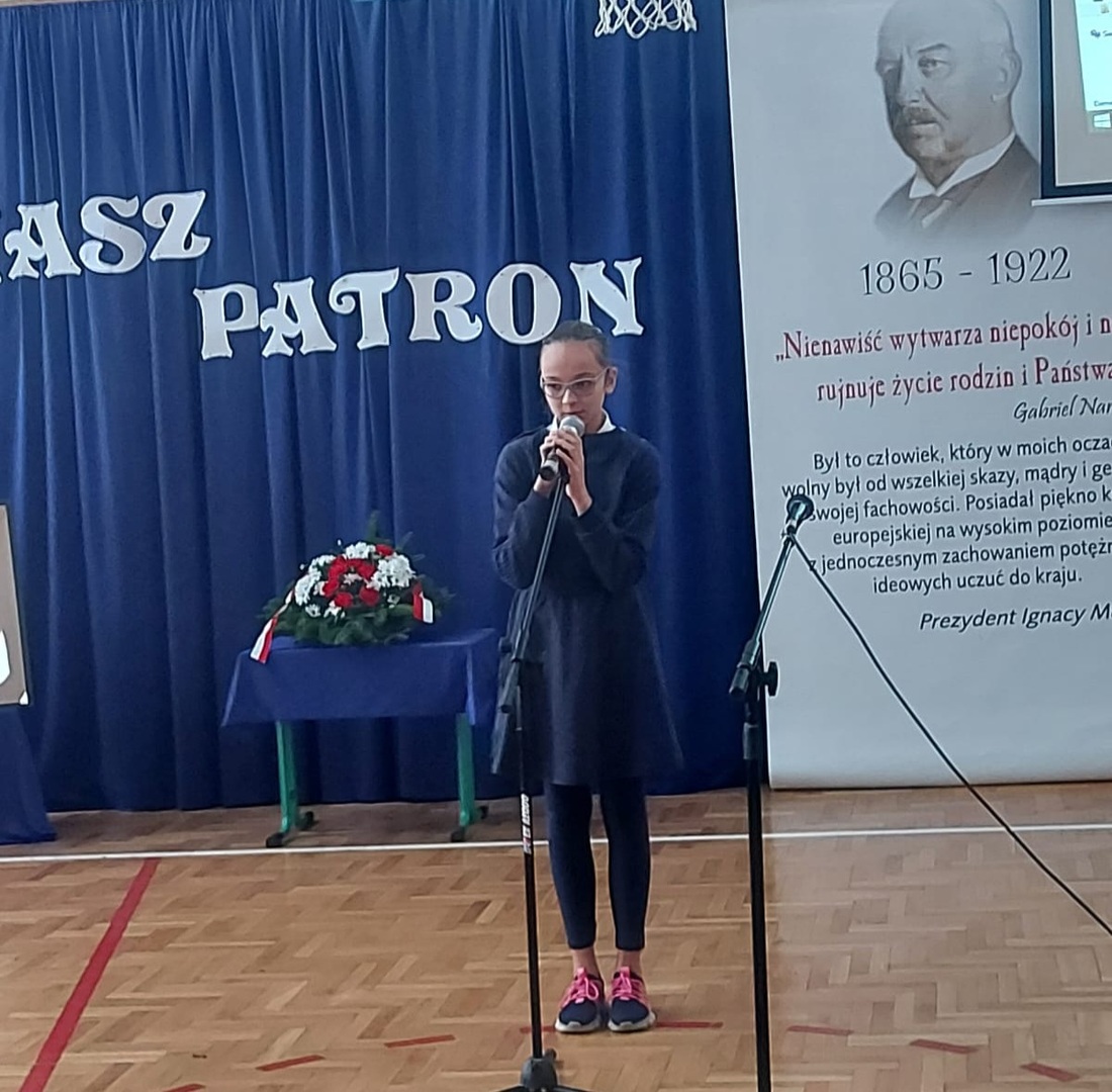 Z okazji 100 rocznicy śmierć Prezydenta Gabriela Narutowicza nasi uczniowie wraz z nauczycielami zorganizowali uroczystą akademię poświęconą sylwetce Patrona. Wręczone zostały nagrody w konkursie historycznym, poetyckim i plastycznym. W szkolnym miejscu pamięci złożyliśmy kwiaty.