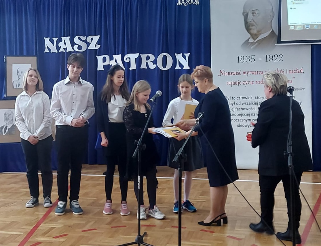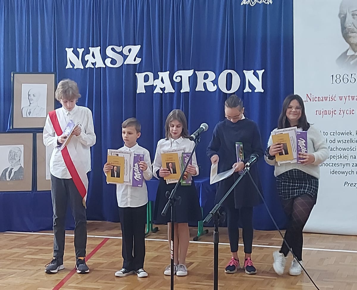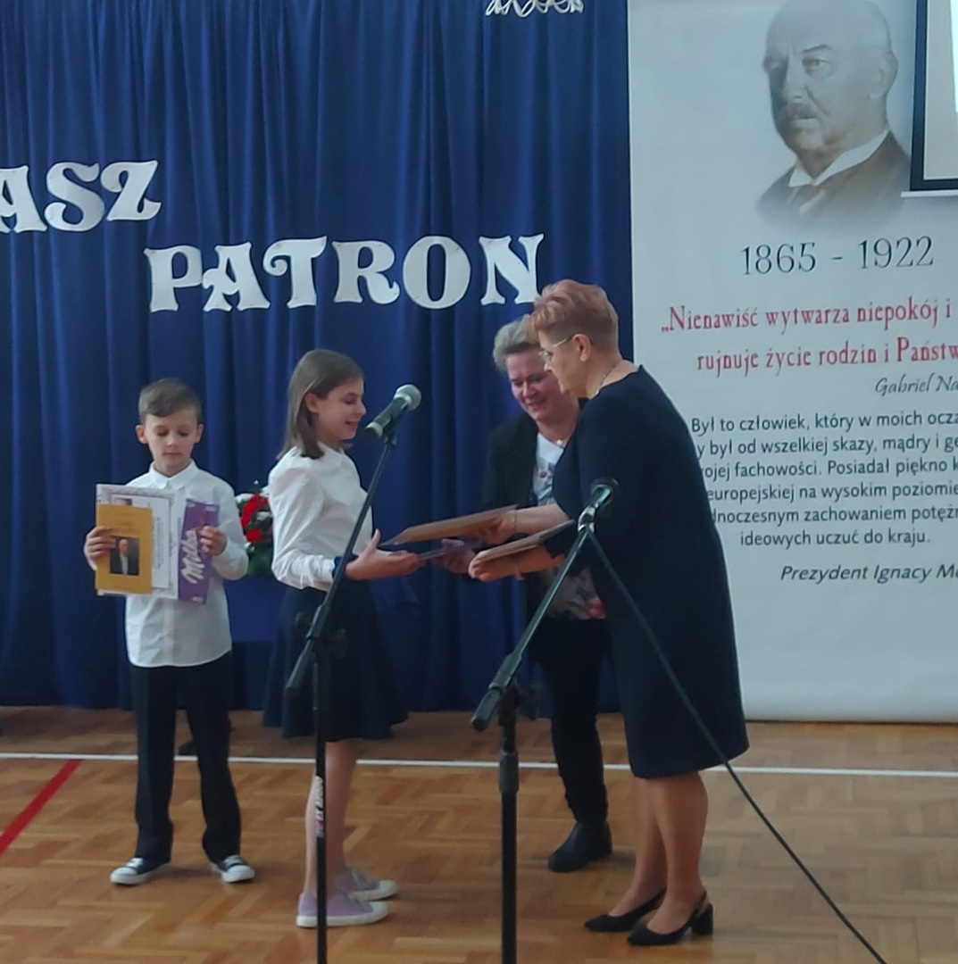 Z okazji 100 rocznicy śmierć Prezydenta Gabriela Narutowicza nasi uczniowie wraz z nauczycielami zorganizowali uroczystą akademię poświęconą sylwetce Patrona. Wręczone zostały nagrody w konkursie historycznym, poetyckim i plastycznym. W szkolnym miejscu pamięci złożyliśmy kwiaty.