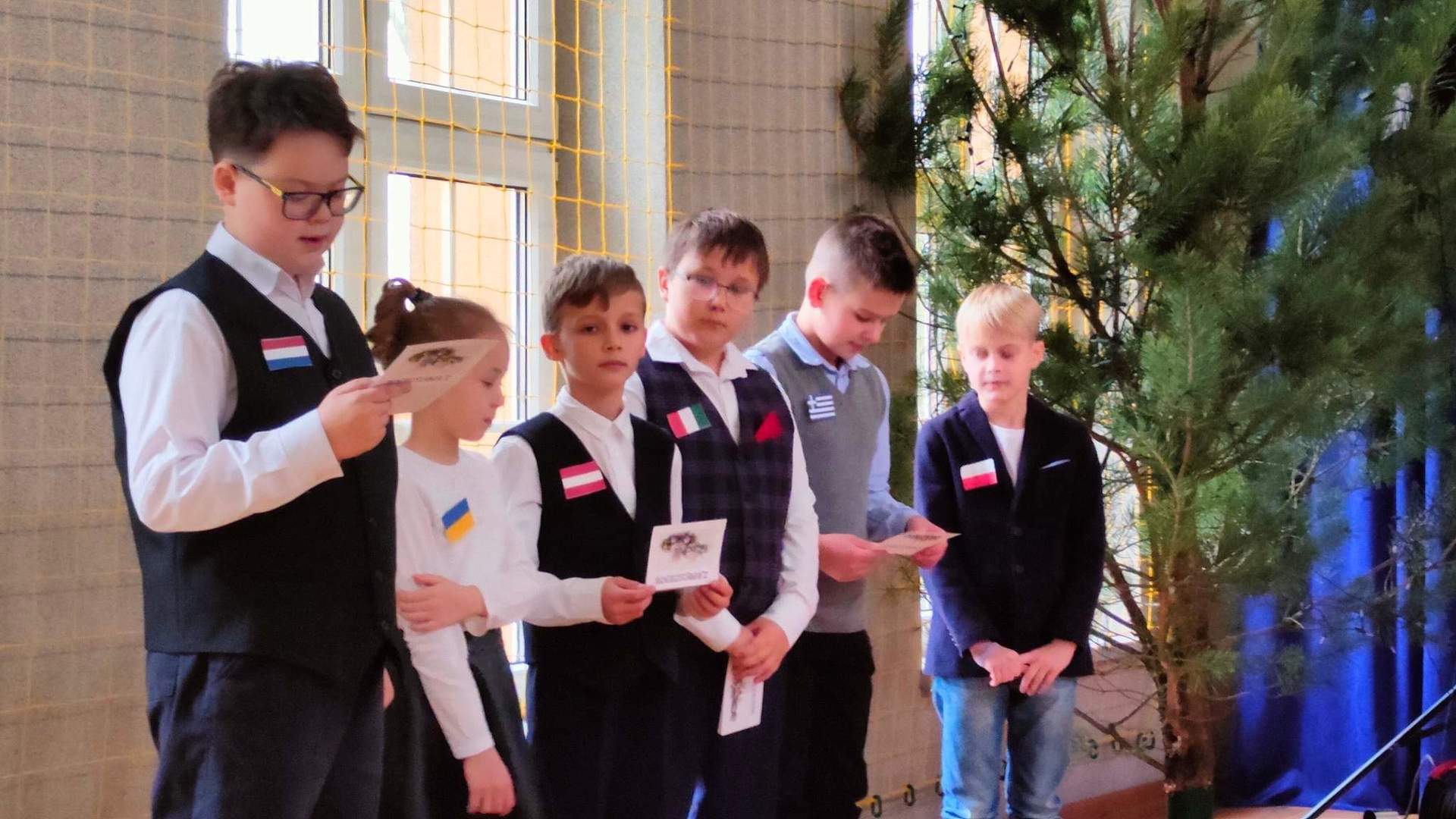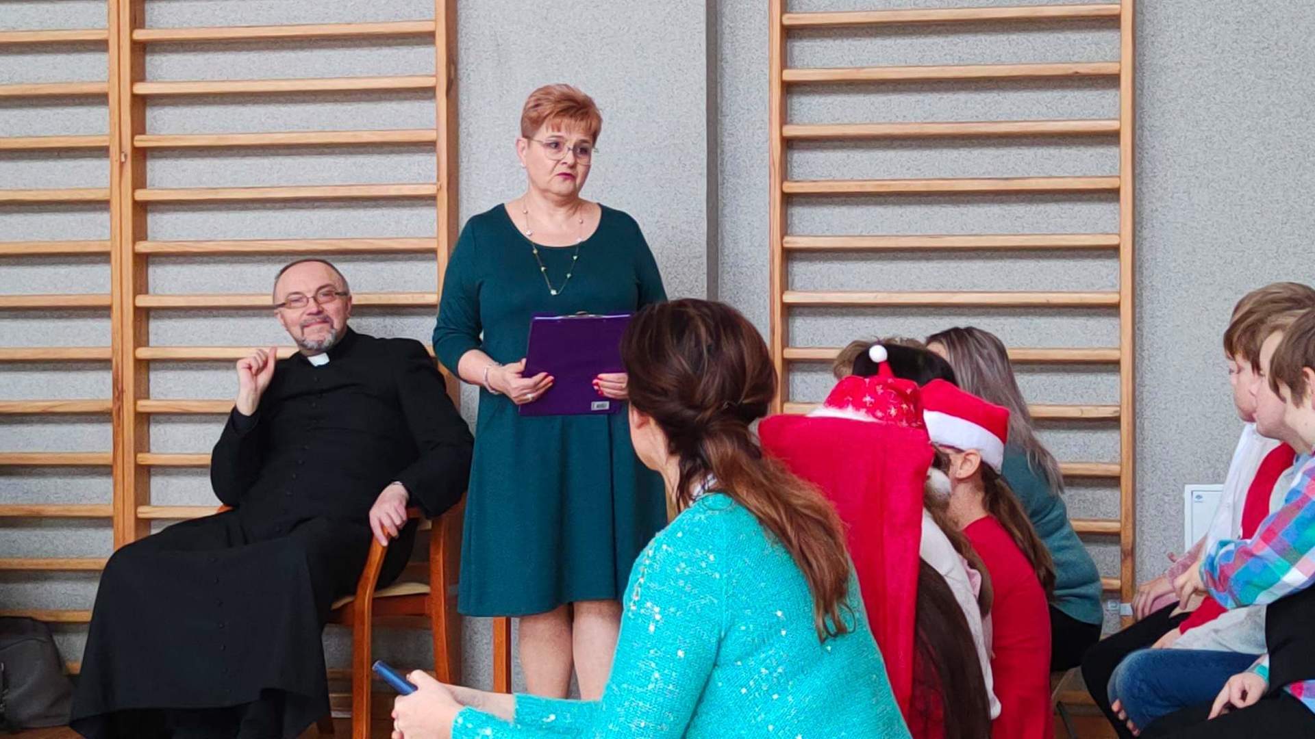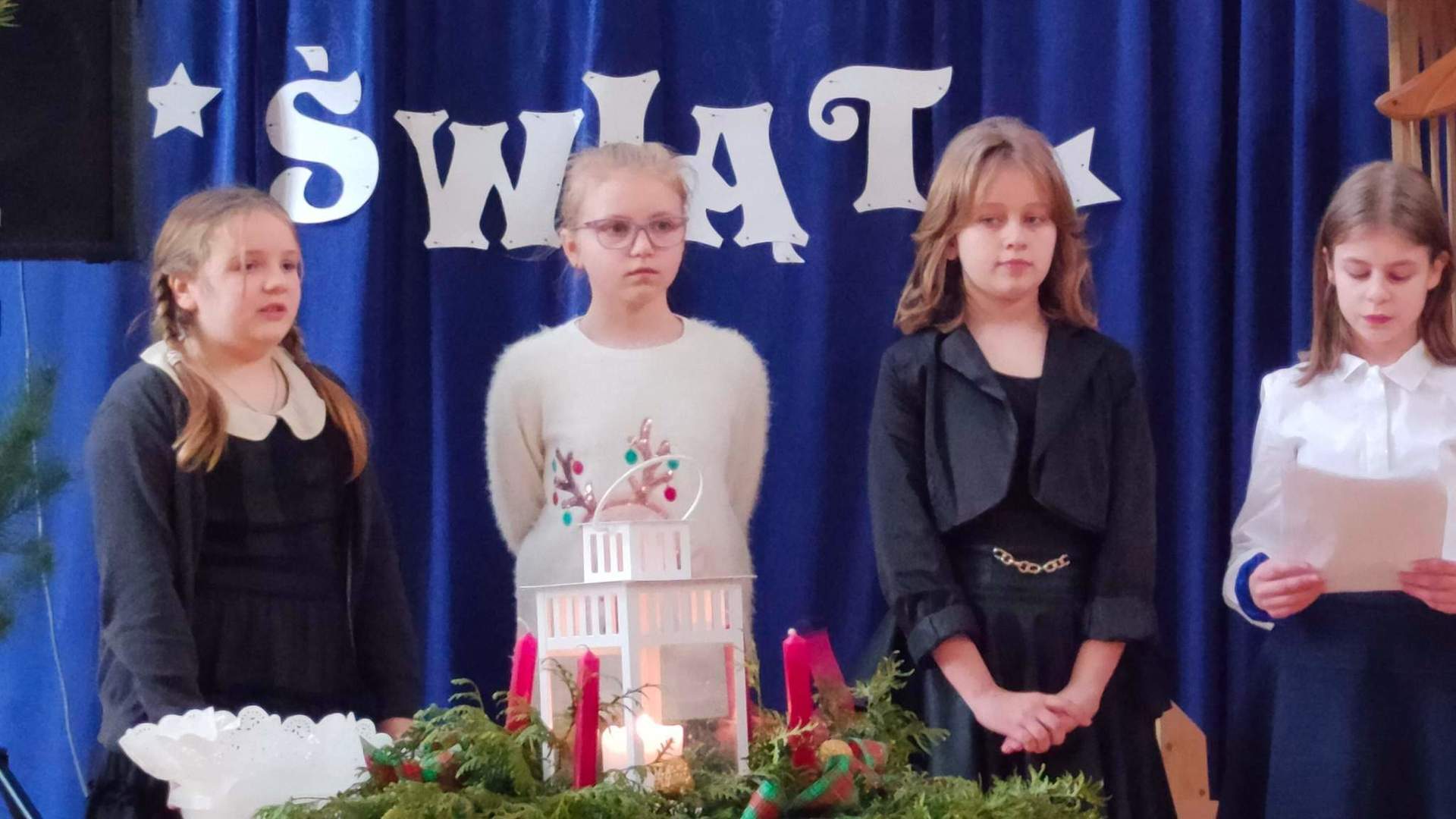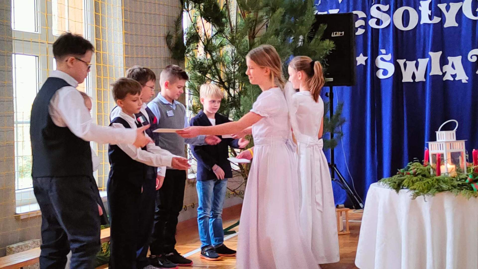 Uczniowie naszej szkoły zaprezentowali przepiękne Jasełka sięgające swoją tradycją do misterii franciszkańskich. Nazwa Jaseła wywodzi się od staropolskiego słowa "jasło" oznaczajacego "żłób". Oprawę muzyczną spotkania stanowiły cymbały, lira korbowa, basetla oraz sopiłka wykonane przez znanego lutnika Stanisława Wyżykowskiego. Po przedstawieniu życzenia całej szkolnej wspólnocie złożyła Pani dyrektor Edyta Bielecka, przedstawiciele szkolnego samorządu: Szymon i Maja oraz ksiądz proboszcz Adam Bednarek.