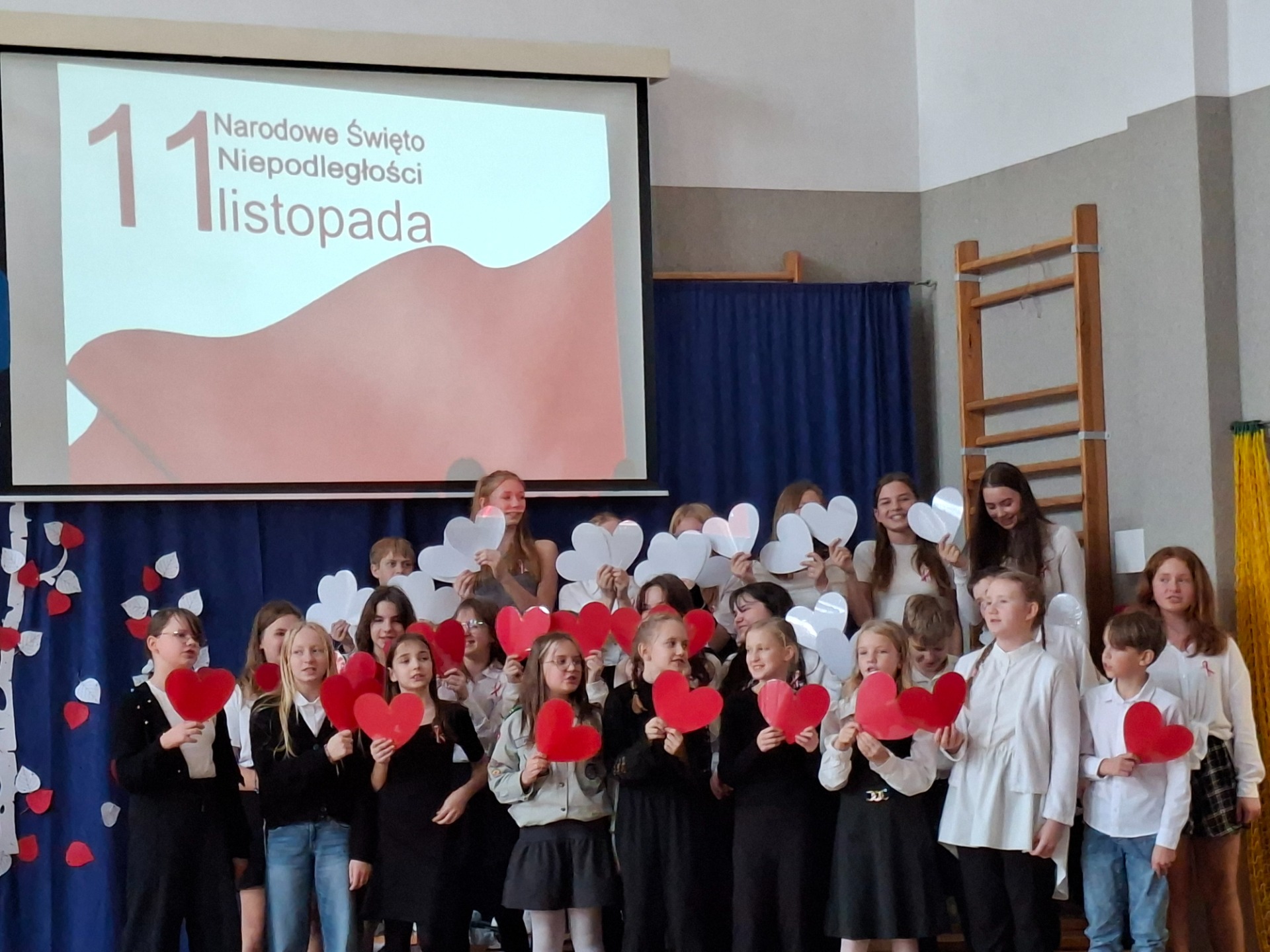 W naszej szkole jak co roku uczliśmy rocznicę odzyskania przez Polskę niepodległości!!! Z tej okazji uczniowie przygotowali piękną akademię upamiętniającą to ważne wydarzenie. Podczas uroczystości recytowali wiersze patriotyczne, a chór szkolny, pod kierunkiem pani Katarzyny Koseskiej, wzruszająco odśpiewał znane pieśni patriotyczne